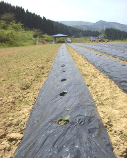 畑全体に鳥除けのオマジナイ。