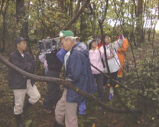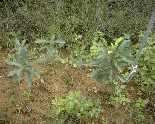 朝までの雨が何とか上がって、今日は昆虫王国に樹木の専門家をお招きして勉強会。木々に名札をつけていきました。右の写真は農園で栽培しているクヌギの苗。