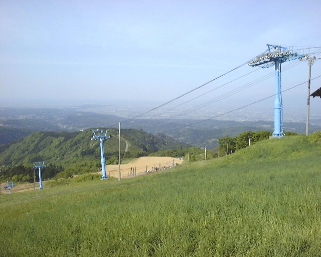 スキー場頂上付近より富山平野を望む。