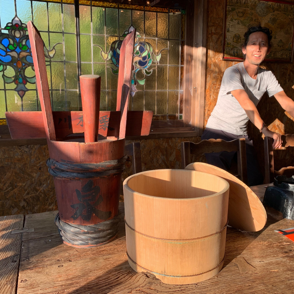 マスターが自分のところの御櫃と桶を持ってやってきました。