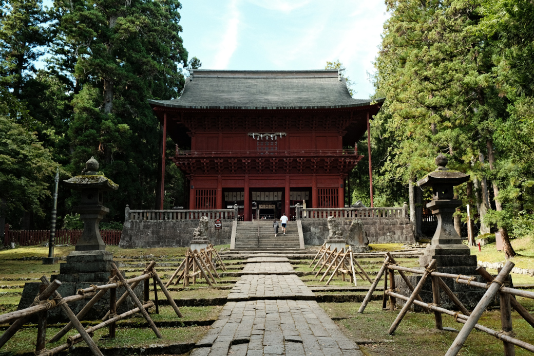 北門鎮護岩木山神社です。こちらは拝殿です。旧社格は国弊小社。式内社ではないかもしれません。祭神は顕國魂神(うつしくにたまのかみ)、多都比姫神(たつひひめのかみ)、宇賀能賣神(うがのめのかみ)、大山祇神、坂上刈田麿命(さかのうえのかりたまろのみこと)の五柱です。