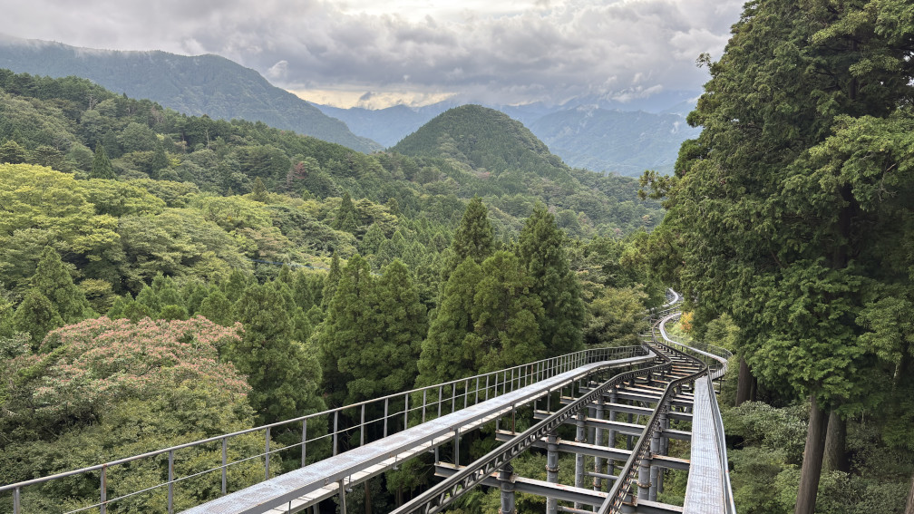 奉幣殿へは、スロープカーに乗ってこのレールを登ってきました。