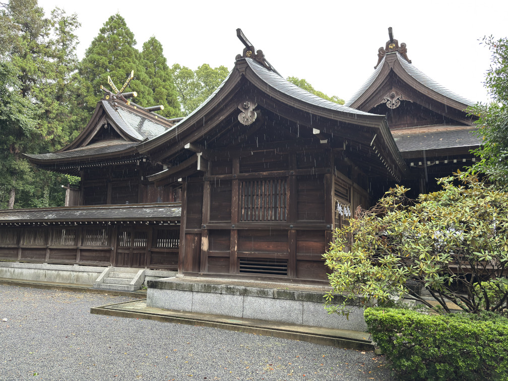 雨の中、千栗(ちりく)八幡宮をお参りしました。八幡宮ですから祭神は應神天皇、仲哀天皇、神功皇后です。古来、宇佐神宮の別宮と言われたそうです。旧社格は國弊小社。写真は拝殿です。